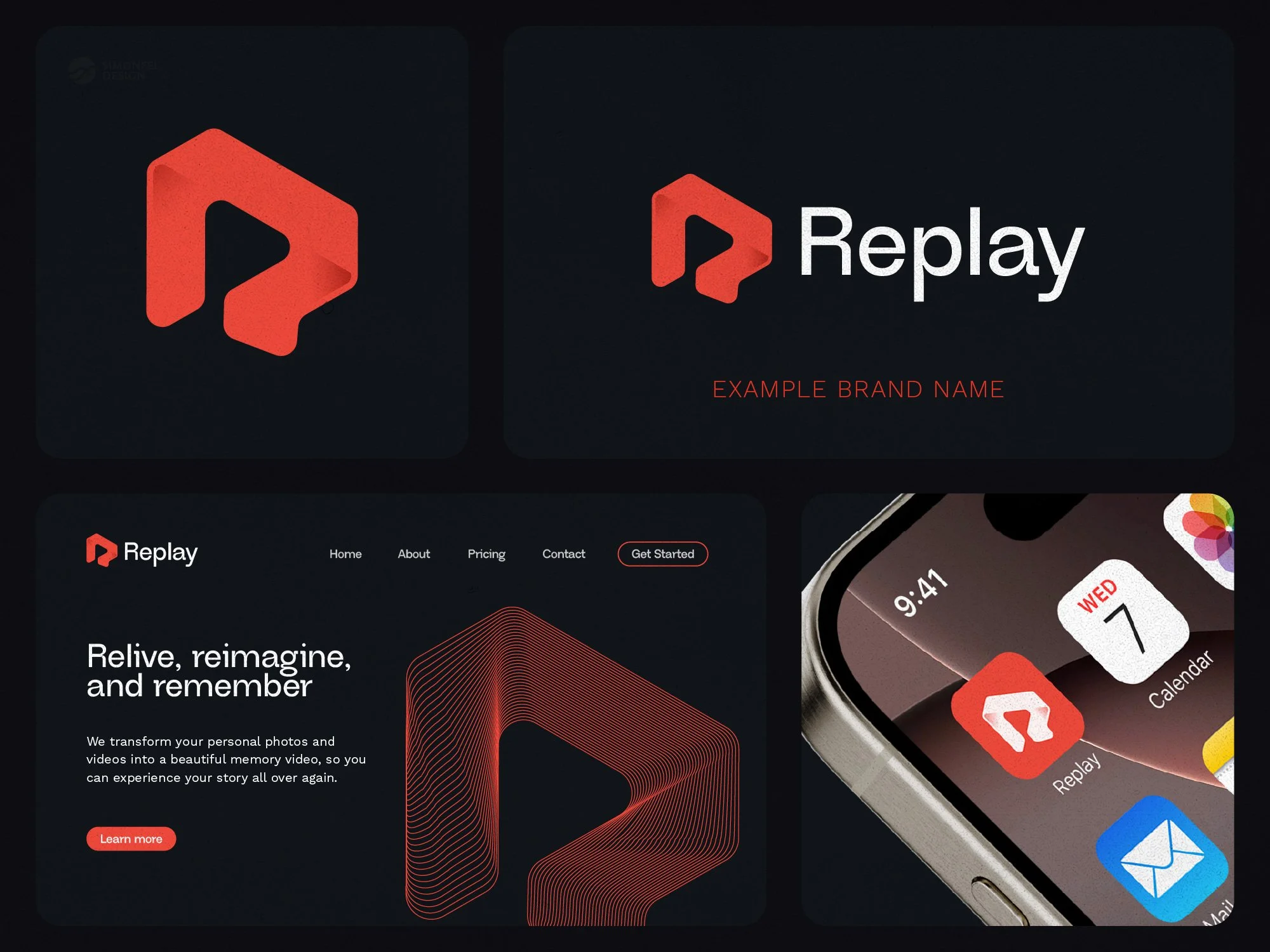 This logo combines the letter 'R' with a cleverly integrated play button in the whitespace, while its overall shape resembles a folding band. The design symbolizes creativity, motion, and interactivity, making it perfect for media, entertainment, or tech-focused brands.